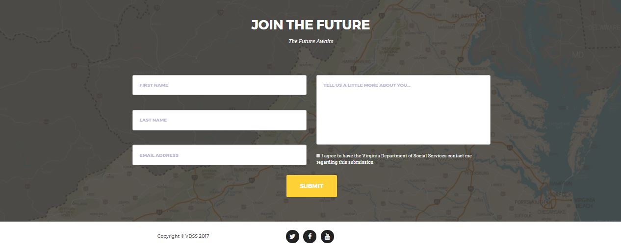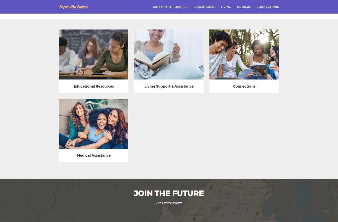Foster my future was a site created to support the Foster My Future campaign launched May 1st, 2017. This campaign sought to encourage individuals of all ages, nationalities and orientation of the importance of foster care. In this project, I served as project manager, coordinating the efforts of the web team and removing obstacles which would have prevented the team from completing the task by the project due date. Through the efforts of the web team and my guidance, we completed the site days before the project due date and, once we received the site content, launched the site in conjunction with the campaign announcement. The site is designed using a modular framework, since it is expected to grow. In it's initial state, as displayed, it serves as a single page site; however, it will eventually grow into one utilizing multiple pages